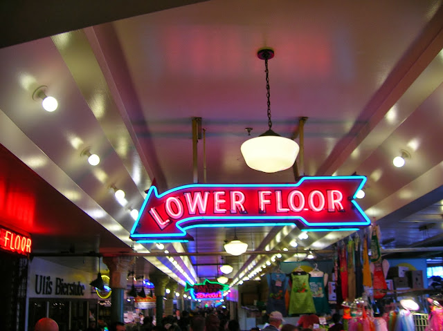 Pike Place Market, truly larger than life. I think I visited almost daily. At the end of June, so much is in season-- I bought fresh cherries, raspberries, apples, peaches. Cappuccinos, a scarf, lip balm, gooseberry jam. A crepe, a juice, mini donuts. Probably some more, that I forgot.